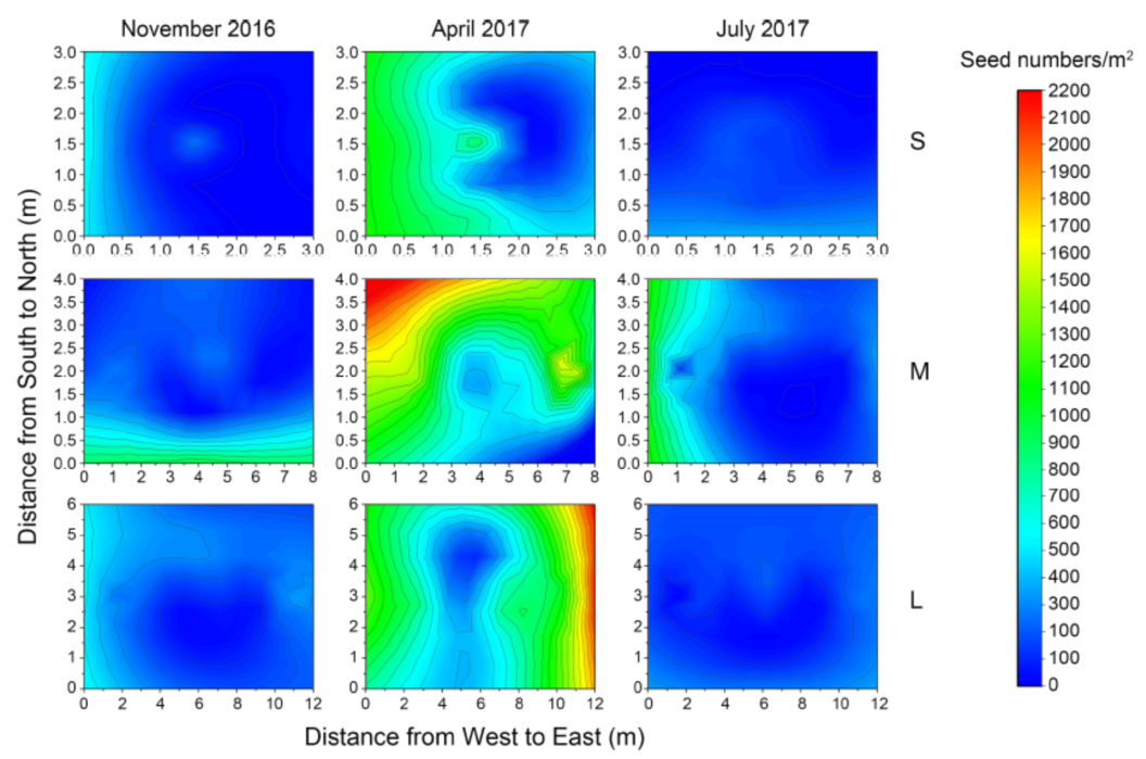 不同大小风蚀斑块内土壤种子库空间分布格局及动态